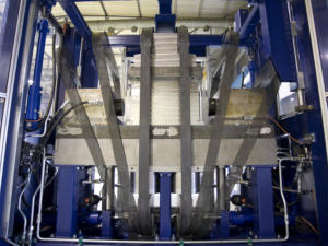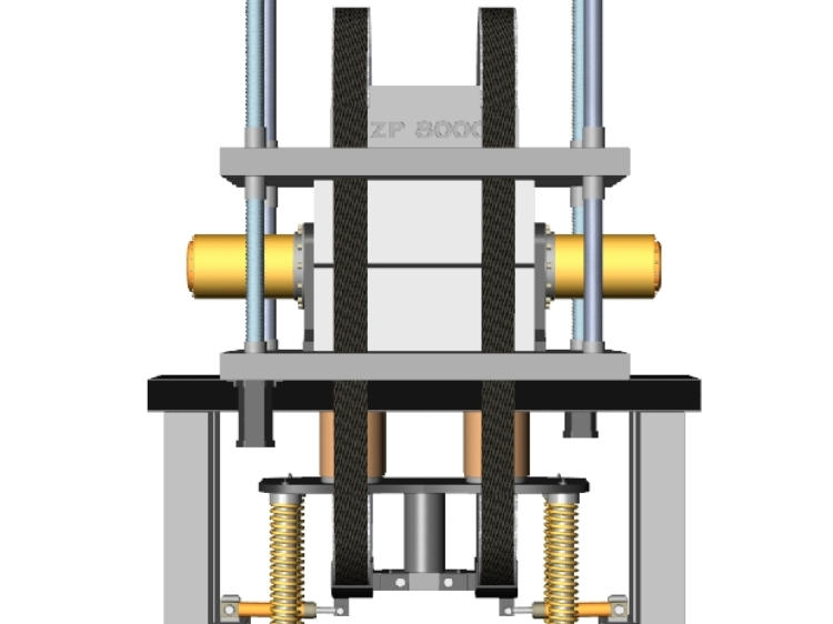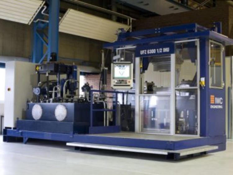 Das MaschinenkonzeptDas neue Maschinenkonzept der Leichtbaupresse oder modularen Schließvorrichtung ist konsequent auf die Bedürfnisse des Prozesses ausgelegt, das heißt, die Erzeugung der Schließkraft und die Bewegung des Werkzeuges werden funktionell komplett getrennt. Durch diese Auslegung entfällt die Bewegung groß dimensionierter Maschinenteile mit entsprechend hohem Energieaufwand.Die folgenden Abbildungen zeigen den prinzipiellen Aufbau des innovativen Pressenkonzeptes am Beispiel einer Leichtbaupresse für die Innenhochdruck-Umformung. Die Leichtbaupresse besteht aus einem Maschinengestell, das eine Stößelplatte sowie eine Tischplatte beinhaltet. Zwischen diesen Elementen kann das Werkzeug beliebig positioniert werden. Unterhalb des Tisches befinden sich Kurzhubzylinder, die das Schließen und Öffnen der Bügel realisieren.Der revolutionäre Ansatz besteht jedoch in den Kohlefaserbügeln, die mit Hilfe der Kurzhubzylinder ein Zuhalten der Presse ermöglichen. Dadurch ist es möglich hohe Schließkräfte zu realisieren. Die Kohlefasern haben dabei den entscheidenden Vorteil einer geringen Dehnbarkeit bei extremer Belastbarkeit sowie eines geringen Gewichtes. Dadurch müssen nur kleine Massen bewegt werden. Dies schafft vor allem innerhalb der Energiebilanz entscheidende Vorteile, da hierbei geringe Anschlussleistungen notwendig sind.Der MaschinenaufbauBei der Entwicklung der Leichtbaupresse erfolgte eine konsequente Trennung zwischen Hydraulikeinheit und Schließvorrichtung. So ist es jederzeit möglich, je nach Ihren Anforderungen eine Maschine nach dem Baukastenprinzip aufzubauen. So können beispielsweise zwei Schließvorrichtungen mit einem Hydraulikaggregat gekoppelt werden. Ebenso können je nach Anforderung ein oder zwei Druckübersetzer oder eine externe Druckeinheit angeschlossen werden. Je nach Ihren Wünschen kann die Steuerung so ausgelegt werden, dass manuelle und/oder automatische Bauteileinlegung erfolgen kann. Durch die kompakte Bauweise ist es möglich, die Leichtbaupresse in Ihre Taktstrasse einzubinden, ein späteres Versetzen ist jederzeit möglich. Die VorteileWie der Name schon sagt ist eine drastische Gewichtsreduzierung gegenüber konventioniellen hydr- aulischen Pressen vorhanden. Bedingt durch die geringen bewegten Massen kann zudem die Anschluss- leistung drastisch reduziert werden. Neben den unterschiedlichen Tischgrößen, die abhängig von der Schließkraft sind, kann die Leichtbaupresse je nach Anwendungsfall mit einem oder mehreren Kohlefaserbügeln ausgestattet werden. Wird beispielsweise nur eine reine Zuhaltung benötigt, reicht ein Bügel vollständig aus. Dies spart Kosten und verringert den Investitionsbedarf. Je nach der herzustellenden Stückzahl können die Anlagen verschiedenartig aufgebaut werden. So ist es beispielsweise möglich, zwei Zuhaltevorrichtungen mit einem hydraulischen Aggregat zu betreiben. Somit kann die Taktzeit halbiert werden, da eine größere Ausbringung möglich ist. Dem Kunden kann je nach Anwendungsfall eine speziell ausgerichtete Maschine angeboten werden.Weitere Vorteile sind:oFlexible Maschinenaufstellung, da kein Fundament notwendig istoVereinfachte, wesentlich kleinere AnlagentechnioHohe Teilequalität bzw. Geometrie und Oberflächeo Wirtschaftliche Serienfertigung mit kleineren LosgrößenoGeringer Wartungs- und InstandhaltungsaufwandWirtschaftliche Vorteile:Hydraulische Pressen werden nach Stand der Technik so ausgeführt, dass das Gestell der Pressen alle notwendigen Kräfte aufnehmen muss. Aus diesem Grund sind vor allem bei Pressen mit hohen Schließkräften große Gestelle notwendig. Diese Gestelle werden meist in der Tor- oder O-Gestell Bauweise ausgeführt, wobei meist die Doppelständerbauart bevorzugt wird. Damit in der Presse bei hohen Belastungen keine Verformung stattfinden kann, werden derartige Pressen durch Zuganker vorgespannt. Die Gestelle erhalten somit eine Druckbelastung in Ausgangssituation. Um diese Zuganker jedoch platzieren zu können sowie eine ausreichende Steifigkeit zu schaffen, müssen die Gestelle auf Fundamenten bzw. teilweise im Maschinenkeller aufgebaut werden. So ist es durchaus möglich, dass eine Presse mit einer Pressenkraft von 20 000 kN eine Höhe von 5 m und noch mehr aufweisen kann. Weiterhin müssen bei derartigen Pressen hohe Massen bewegt werden. Der Stößel muss ausreichend Festigkeit aufweisen, um eine Durchbiegung zu vermeiden. Die Anwendungsgebiete:Das Verfahren IHU - Innenhochdruck-UmformenAls Innenhochdruck-Umformen (IHU) bzw. Hydroforming wird das Umformen metallischer Rohre in einem geschlossenen Formwerkzeug mittels Innendruck verstanden, wobei im Prozess eine Wasser-Öl-Emulsion in das Werkzeug bzw. Rohr eingebracht wird. Dichtstempel, angetrieben von Hydraulikzylindern, sichern die Rohrenden während des Umformvorganges. Wesentliche Prozessparameter sind der Innendruck sowie das Nachschieben von Material bzw. Stauchen von den Bauteilenden her mit Hilfe der Dichtstempel.Hydraulische Pressen mit entsprechendem Hydraulikaggregat und zugehöriger Steuerung dienen als Zuhaltevorrichtung für die Formwerkzeuge zur Fertigung von IHU-Bauteilen. Eine geregelte Zuhaltevorrichtung mit großen Zuhaltekräften ist aufgrund der variablen Druckverläufe im Formwerkzeug notwendig. Die Leichtbaupresse ist speziell für das Innenhochdruck-Umformen ausgelegt. Durch eine intelligente Steuerung erfolgt eine exakte Prozesssteuerung des IHU/Prozesses. Mit Hilfe der Trace-Funktion können die Prozessparameter exakt aufgezeichnet werden. So kann jedes einzelne Bauteil exakt dokumentiert werden.Das Verfahren PreshärtenPresshärten ist ein Verfahren, das in den letzten Jahren verstärkt in der Industrie Anwendung findet. Dabei wurden bis zum jetzigen Zeitpunkt hauptsächlich Bauteile aus Blech mit dem Fertigungsverfahren hergestellt. Presshärten verbindet den Vorteil der Warmumformung, komplexe Tiefziehteile ohne nennenswerte Rückfederung in einem einzigen Zug herstellen